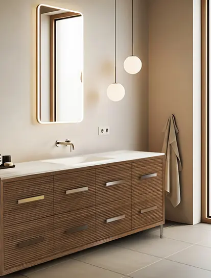 Explore freestanding and built-in vanities, crafted in diverse sizes and finishes to suit your space.